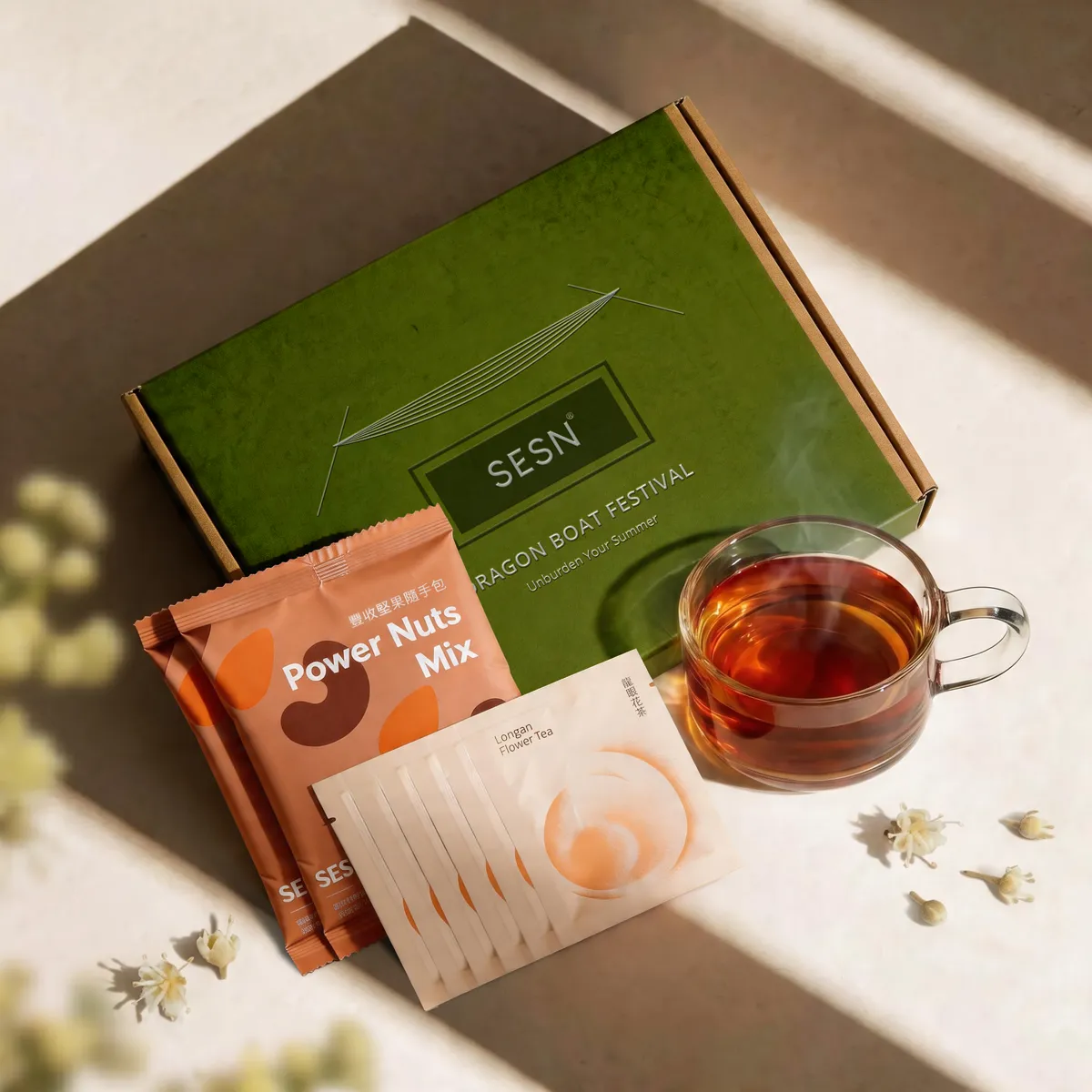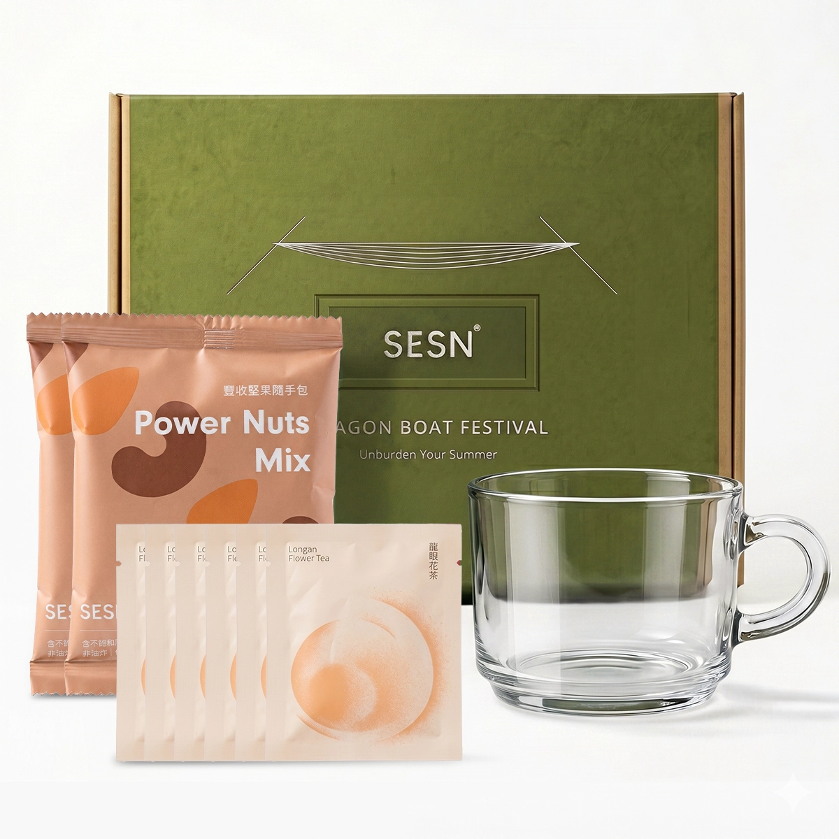 粽香過後,身體需要的不是更多負擔。SESN 2026 端午節送禮系列推出兩款永續端午節禮品,由內而外幫員工與客戶找回仲夏的輕盈。仲夏解膩禮盒以米其林三星餐廳指定合作茶品牌出品的野放茗茶-龍眼花茶、玻璃馬克杯與豐實堅果,為佳節飲食帶來清潤補給。